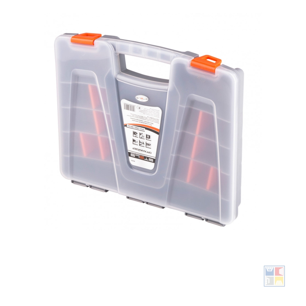 Пластиковый органайзер STELS предназначен для хранения и транспортировки крепежа и различных мелочей. Состоит из нескольких регулируемых по размеру секций и позволяет удобно и компактно разместить все необходимые аксессуары. Изготовлен из полипропилена. Закрывается с помощью двух защелок и имеет ручку для переноски.