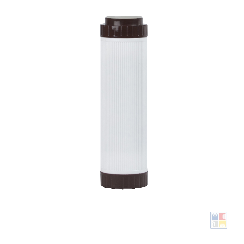 Картридж Fe 10Sl выполнен из полипропиленового предфильтра (25-50 мкм), катионообменного материала, кокосового угля с серебром и постфильтра (с размером пор 5 мкм). Применяется для очистки железистой воды от растворенного и окисленного железа, тяжелых металлов и марганца. Рекомендуется при содержании растворенного железа до 2 мг/л. Возможна регенерация картриджа Fe BB20" в 2% растворе уксусной кислоты методом замачивания и последующей интенсивной промывкой чистой водой.
